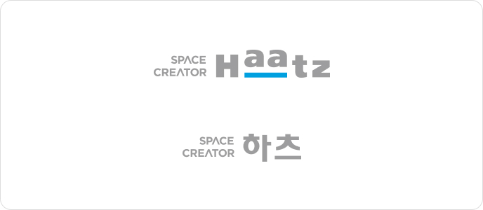 하츠 워터마크의 색상표현은 회색바탕에 Blue와 Gray를 사용하는 것을